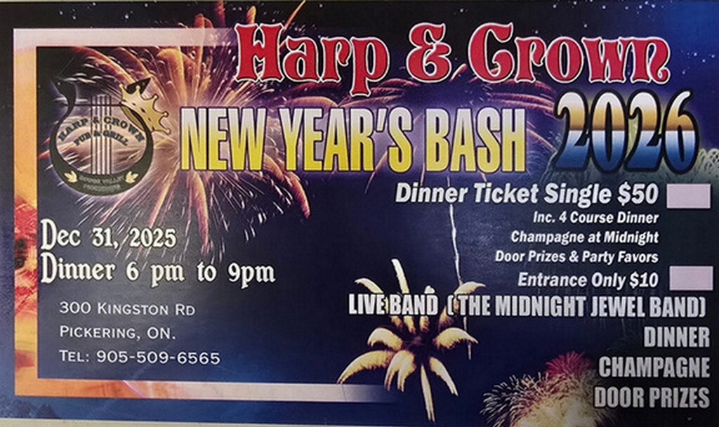 New Year’s Bash with Live Band at Harp & Crown Pub